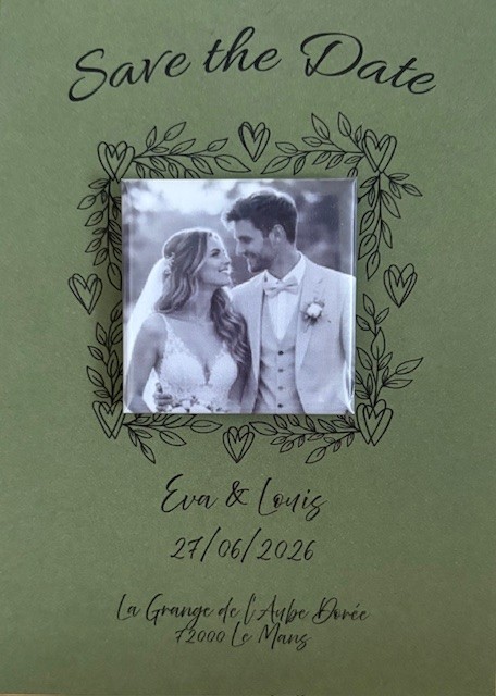 A partir d'une photo que vous nous confiez à l'avance, nous réalisons des magnets "Save the Date" personnalisés, à votre image.